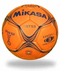 کلیه خطوط زمین جزء قسمتی از منطقه ایست که آن را محدود می کند .خط دروازه ها ما بین دو پایه دروازه ۸ سانتیمتر و ما بقی خطوط ۵ سانتیمتر پهنا دارد . ● زمین بازی : ۱) محوطه ای است به شکل مستطیل که طول آن ۴۰متر و عرض آن ۲۰ متر می باشد . این زمین دارای دو محوطه دروازه (قانون ۱:۴ و قانون ۶ )و یک محوطه بازی است .دو خط بلند طولی را خطوط کناری و خطوط کوتاه انتهایی را خط دروازه (بین دو پایه دروازه )یا خط بیرونی دروازه (دو طرف دروازه )می نامند .زمین بازی حداقل باید در طول خطوط کناری یک متر و در پشت خط بیرونی دروازه ۲ متر حریم داشته باشد . وضعیت زمین بازی نباید به صورتی تغییر یابد که باعث کسب آوانتاژیکی از تیم ها شود . ۲) در وسط هر خط دروازه یک دروازه قرار میگیرد دروازه ها باید به خوبی در زمین یا دیوار پشت ان نصب شده باشند .ابعاد داخلی هر دروازه ۲ متر ارتفاع و ۳ متر طول دارد .هر دروازه دارای ۲ پایه است که به وسیله یک تیر افقی به یکدیگر متصل می شوند.لبه پشتی پایه ها با لبه بیرونی خط دروازه منطبق است پایه ها و قطعه افقی بالای آنها باید مقطعی به ابعاد ۸ سانتیمتر داشته باشد . سه بخش دروازه که از داخل زمین نمایان است باید سطوح آن با دو رنگ متفاوت که ضمنا ً با زمینه پشت دروازه اختلاف واضح داشته باشد رنگ آمیزی شود . دروازه ها باید مجحز به تور باشد به نحوی که توپ پرتاب شده به دروازه به سرعت از آن خارج نشود . ۳) کلیه خطوط زمین جزء قسمتی از منطقه ایست که آن را محدود می کند .خط دروازه ها ما بین دو پایه دروازه ۸ سانتیمتر و ما بقی خطوط ۵ سانتیمتر پهنا دارد . خطوط بین دو منطقه مجاور را می توان به وسیله ی رنگی متفاوت از کفپوش مجاور آن منطقه جایگزین نمود . ۴) در مقابل هر دروازه یک محوطه دروازه قرار دارد محوطه دروازه به وسیله خط دروازه محدود و معین می شود (خط شش متر )که به شرح ذیل رسم میگردد : یک خط به طول سه متر و به فاصله شش متر موازی و قرینه با خط دروازه در داخل زمین کشیده می شود.(از لبه عقبی خط دروازه تا لبه جلو ئی خط محوطه در وازه )و این خط از هرطرف با یک ربع دایره به شعاع شش متر (به مرکز زاویه عقب داخلی پایه های دروازه ) به خط بیرونی دروازه متصل می شود. ۵) خط پرتاب آزاد ( نه متر ) یک خط منقطع است که طول هر نقطه و فاصله بین قطعات ۱۵ سانتیمتر است .این خط به فاصله سه متر و موازی با خط منطقه دروازه رسم می شود . ۶) خط ۷ متر یک متر طول دارد و موازی با خط دروازه کشیده می شود . فاصله این خط با لبه پشتی خط دروازه ۷ متر است و دقیقا در مرکز و مقابل دروازه کشیده می شود. ۷) خط محدودیت دروازه بان (۴متر )به طول ۱۵ سانتیمتر و موازی با خط دروازه کشیده میشود . فاصله این خط با لبه ی پشتی خط دروازه ۴ متر و دقیقا در مرکز و مقابل دروازه قرار دارد . ۸) خط وسط زمین نقاط مرکزی دو خط کناری را به یکدیگر متصل می نماید . ۹) خط منطقه تعویض(بخشی از خط کناری )برای هر تیم به فاصله ۵/۴ متر از خط وسط تعیین شده است .نقطه انتهایی خط منطقه تعویض به وسله خطی موازی با خط وسط و به طول ۱۵ سانتیمتر به سمت داخل خط کناری و ۱۵ سانتیمتر به سمت خارج خط کناری مشخص می گردد. ● بازیکنان : هر تیم شامل ۱۲ بازیکن می بیاشد که از این ۱۲ نفر هفت نفر داخل زمین هستند پنج نفر ذخیره می باشند .از هفت نفر بازیکنان اصلی یک نفر به عنوان دروازه بان معرفی می شود . هر تیم بایستی حداقل ۵ بازیکن داخل زمین داشته باشد تا بازی شروع شود . برای مینی هندبال در آموزش و پرورش تیم شامل ۱۰ نفر بازیکن می باشد که از این ۱۰ نفر شش نفر داخل زمین بعنوان بازیکن اصلی قرار می گیرند چهار نفر ذخیره محسوب می شوند. ● وقت بازی علامت پایانی و تایم اوت : ۱) وقت عادی بازی برای تمامی تیمهائی که ۱۶ سال به بالا دارند در دو نیمه و هر نیمه به مدت ۳۰ دقیقه است که در بین آن ۱۰ دقیقه استراحت داده میشود . وقت عادی بازی برای تیم های جوان دو زمان ۲۵ دقیقه ای برای گروه سنی ۱۲ تا ۱۶ سال و دو وقت ۲۰ دقیقه ای برای گروه سنی ۸ تا ۱۲ سال می باشد . در هر دو موارد زمان استراحت ۱۰ د قیقه می باشد . ۲) چنا